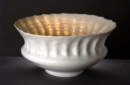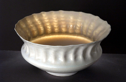 Irit Abba, pinched bowl, wheel thrown, porcelain, h. 11 x d. 22 cm.